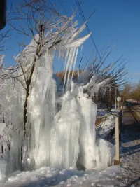 Растущее над порывом дерево покрылось льдом.