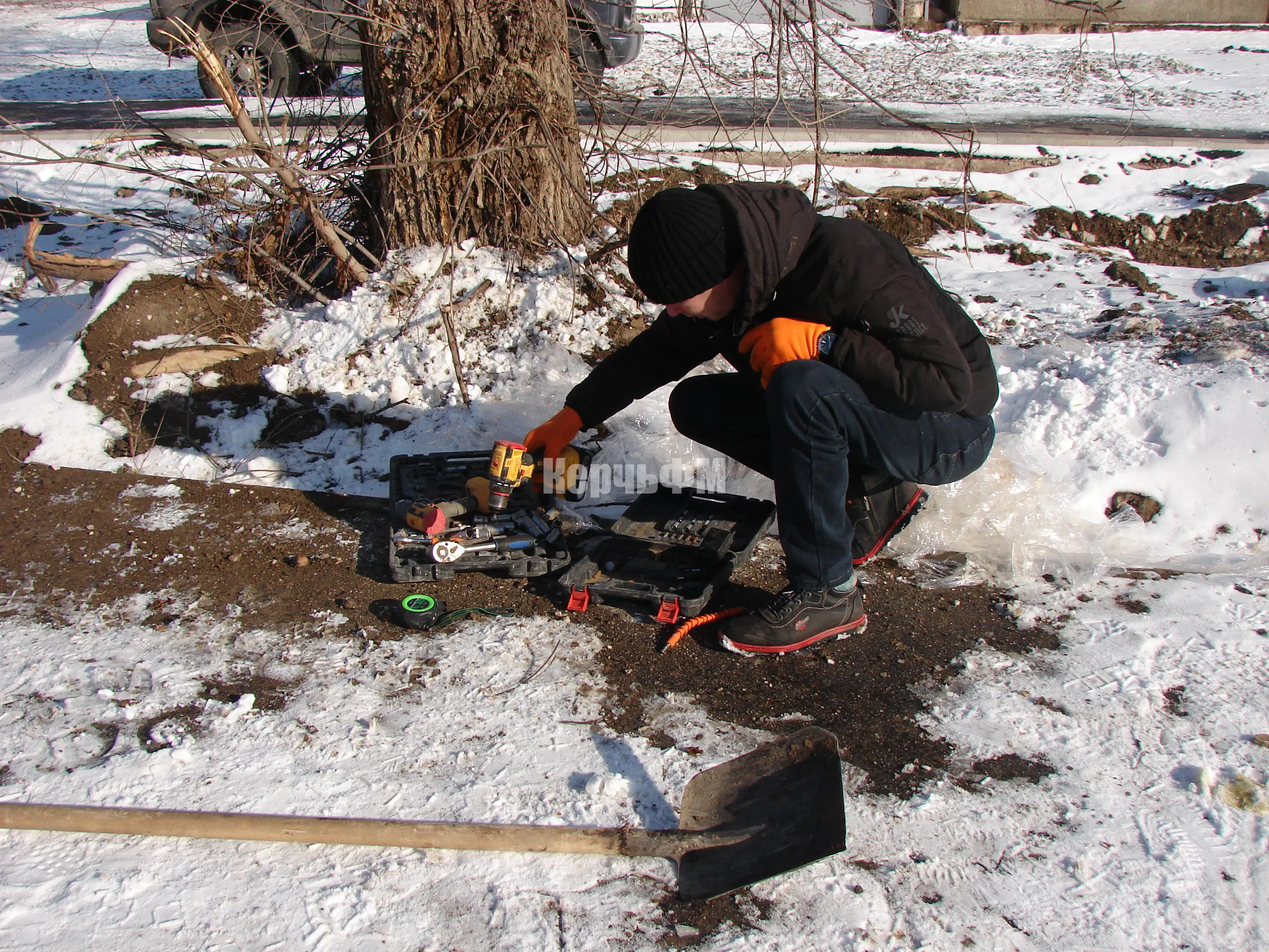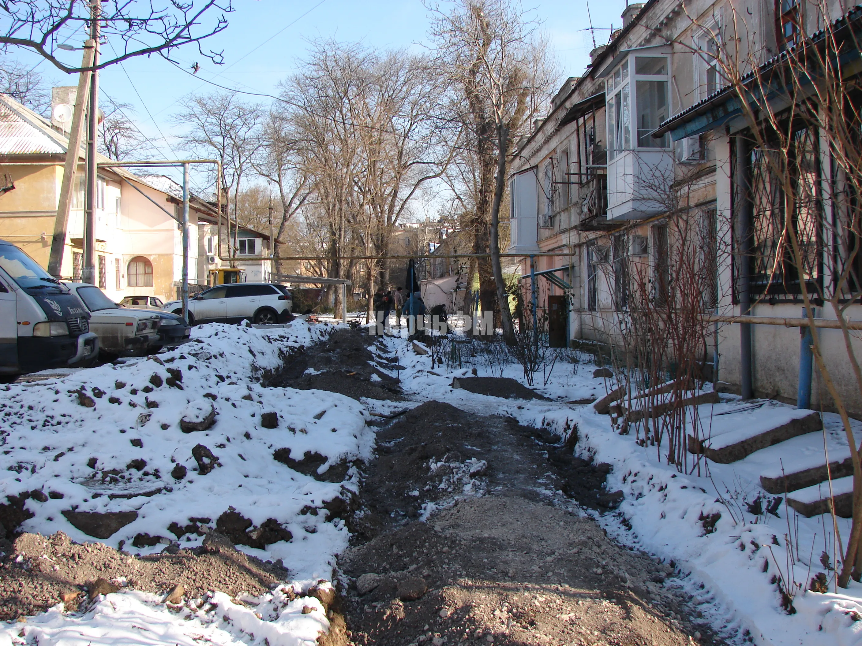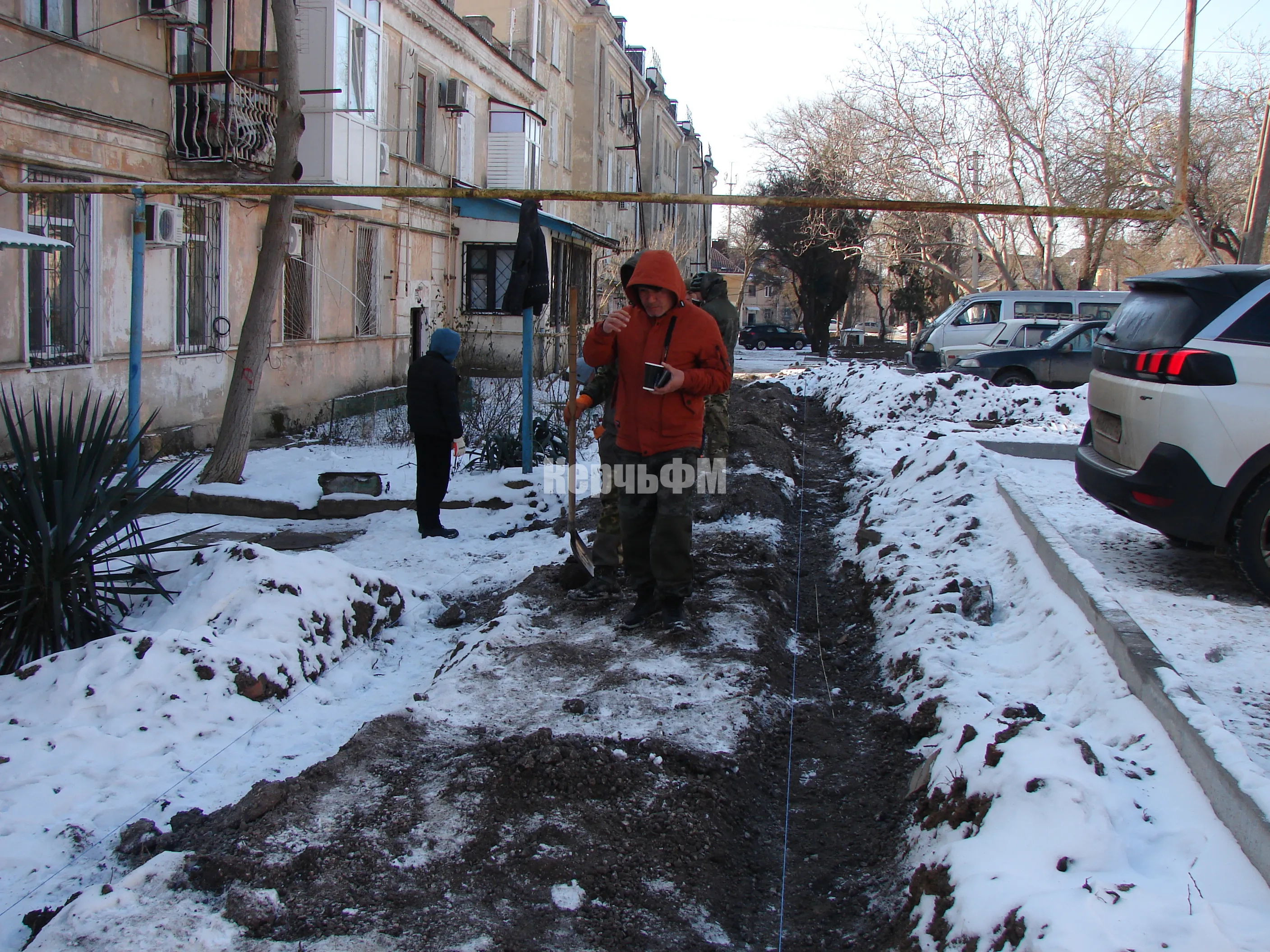 Как рассказал КерчьФМ один из рабочих, подмерзшая земля процессу не мешает, помогает техника.