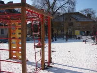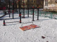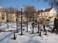 Сегодня на спортивных площадках здесь еще продолжается установка тренажеров.