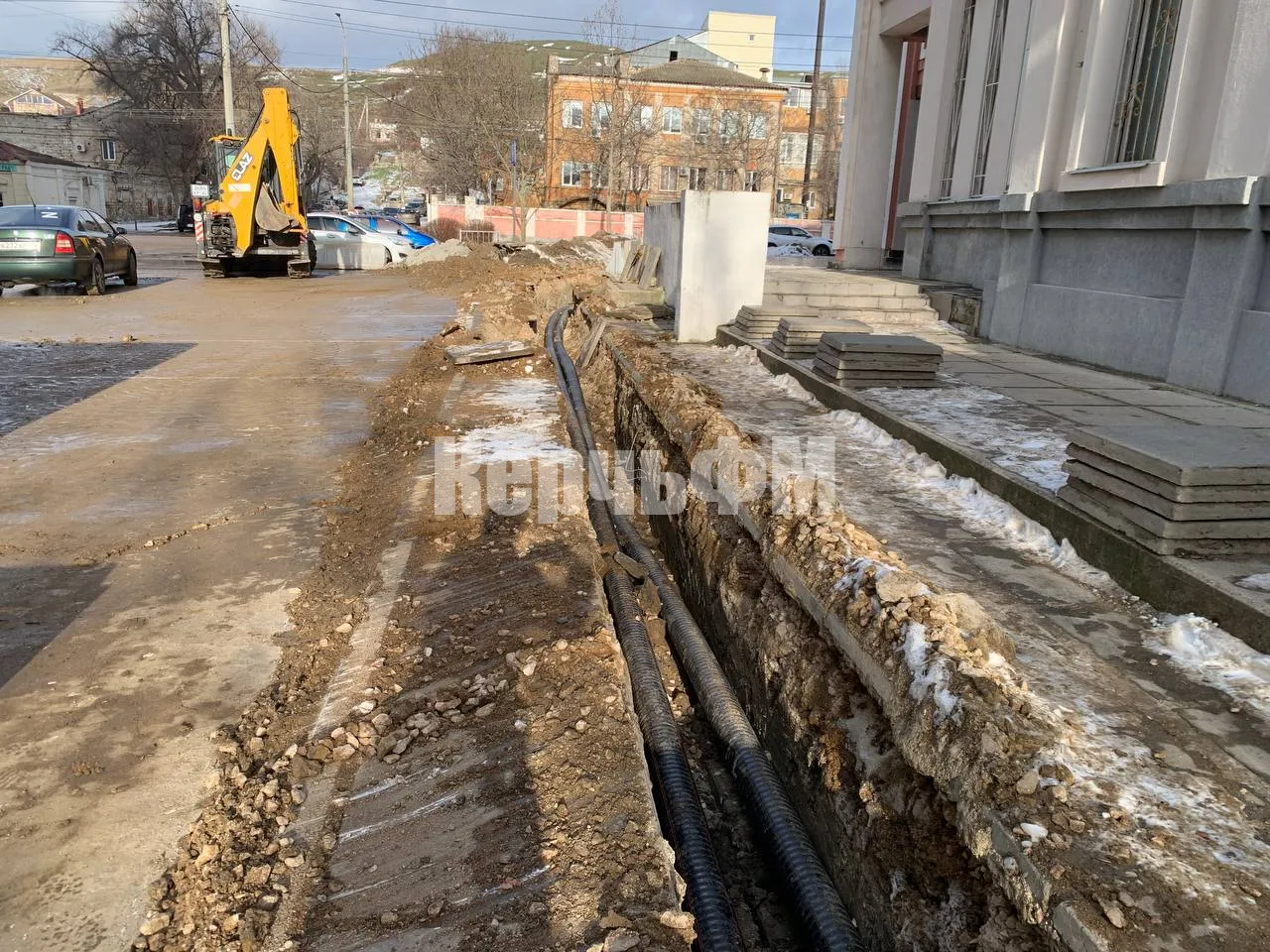 При ремонте дороги по улицы Свердлова, сотрудники филиала ГУП РК «Крымтеплокоммунэнерго» выполнили закладку гильзы, что теперь позволило реализовать намеченные работы без перекрытия движения и вскрытия нового дорожного покрытия.