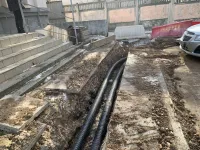 От теплопункта по Свердлова, 57 до здания поликлиники протянули 200 метров подземного трубопровода на отрезке 100 метров.
