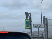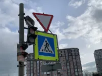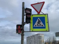 Сегодня утром, выезжающие с дороги-дублера Шоссе Героев Сталинграда на автомагистраль водители, вновь фиксировали повернутый на 180 градусов светофор и знак "уступи дорогу".