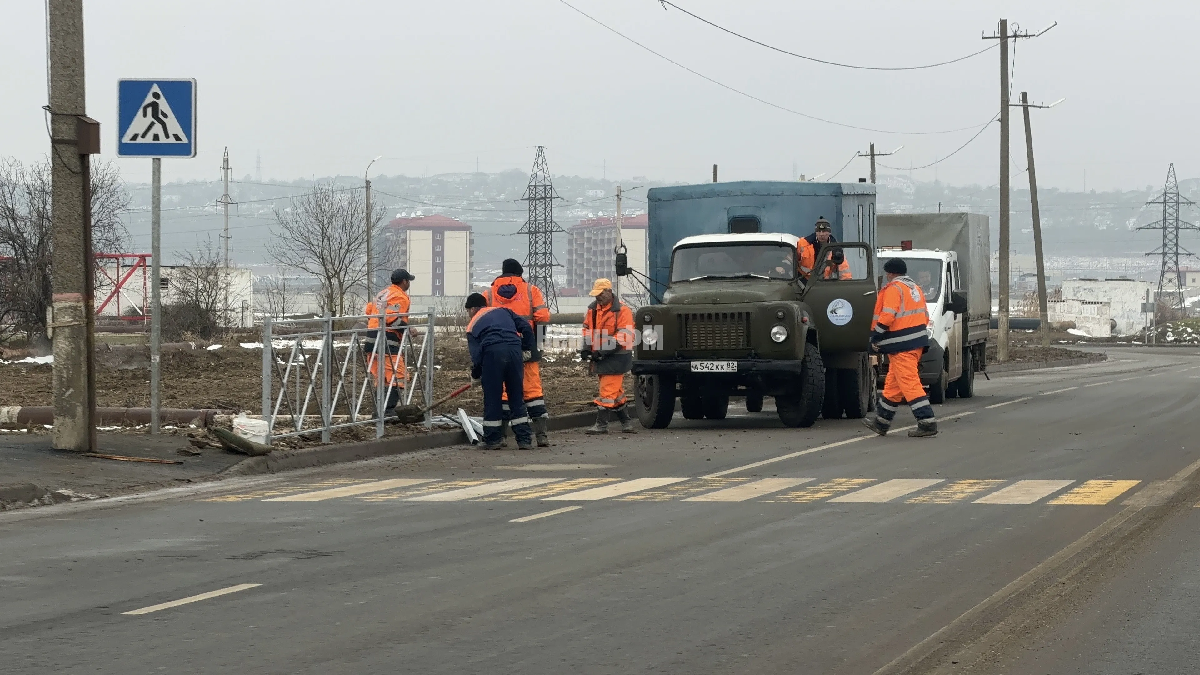 На Индустриальном шоссе в Керчи устанавливают ограждения вдоль дороги