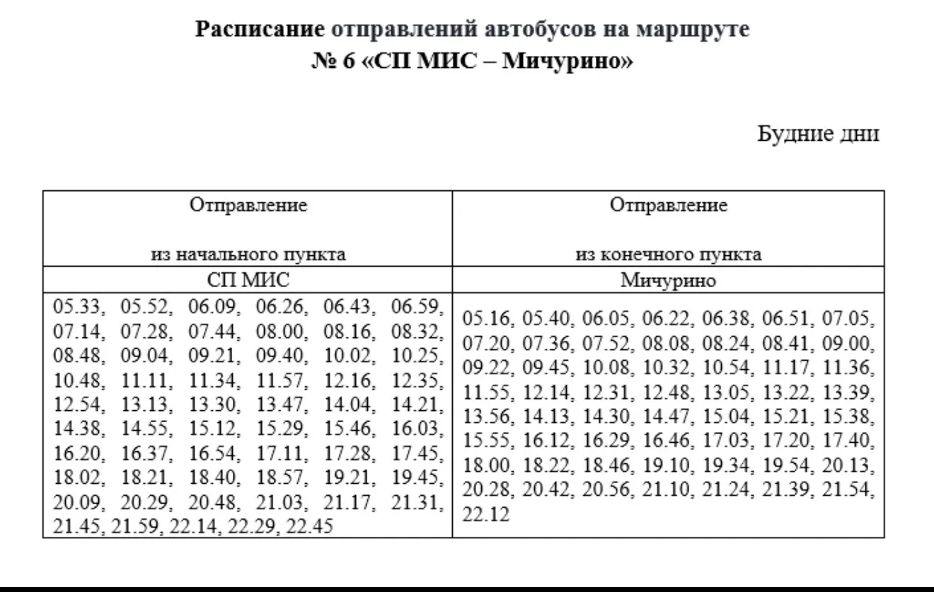 В Керчи с 26 января  в ТЕСТОВОМ режиме будет изменено расписание движения автобусов в будние дни на муниципальном маршруте регулярных перевозок №6 «СП МИС - Мичурино» (в утренние часы). Об этом сообщает пресс-служба администрации, - передает КерчьФМ.