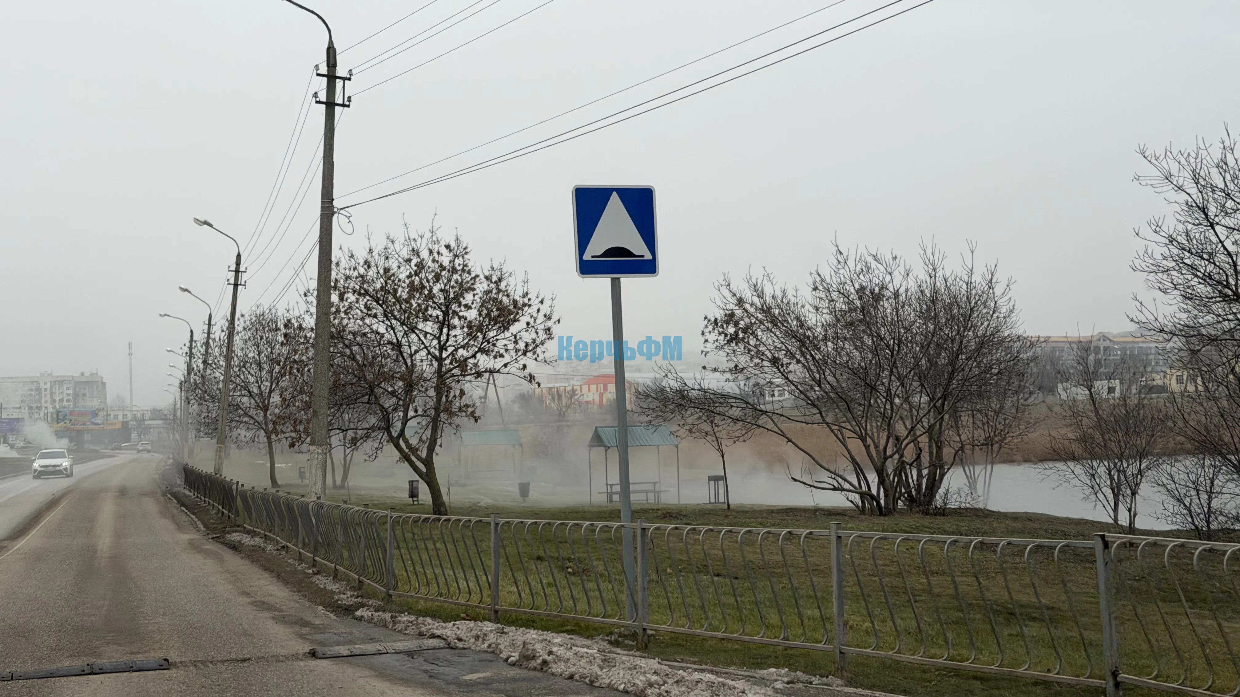 В Керчи, на улице Ворошилова, горячий пар стоит над проезжей частью и газоном. Также пар стоит и над частью озера. Так, с утра, 26 января на этом участке водители двигаются предельно осторожно: полоса для движения в пару, сильно ограничена видимость, - передает КерчьФМ.
