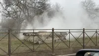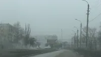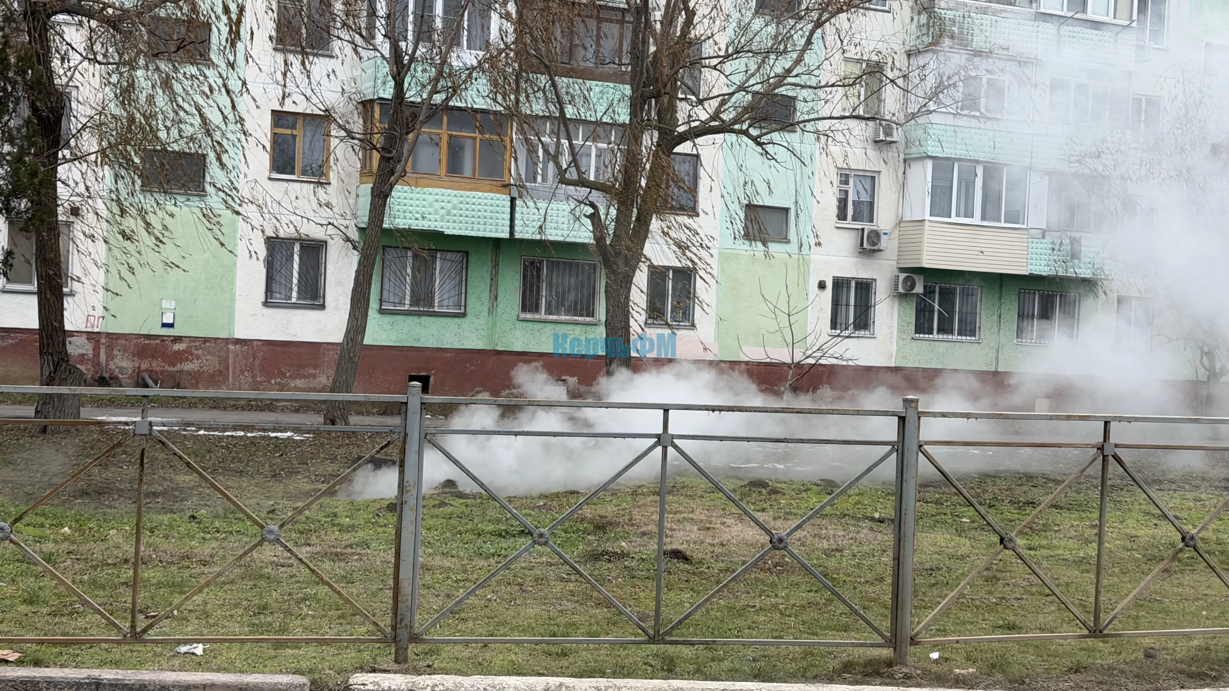 На Ворошилова горячий пар стоит над дорогой и газоном