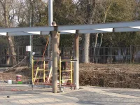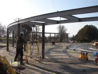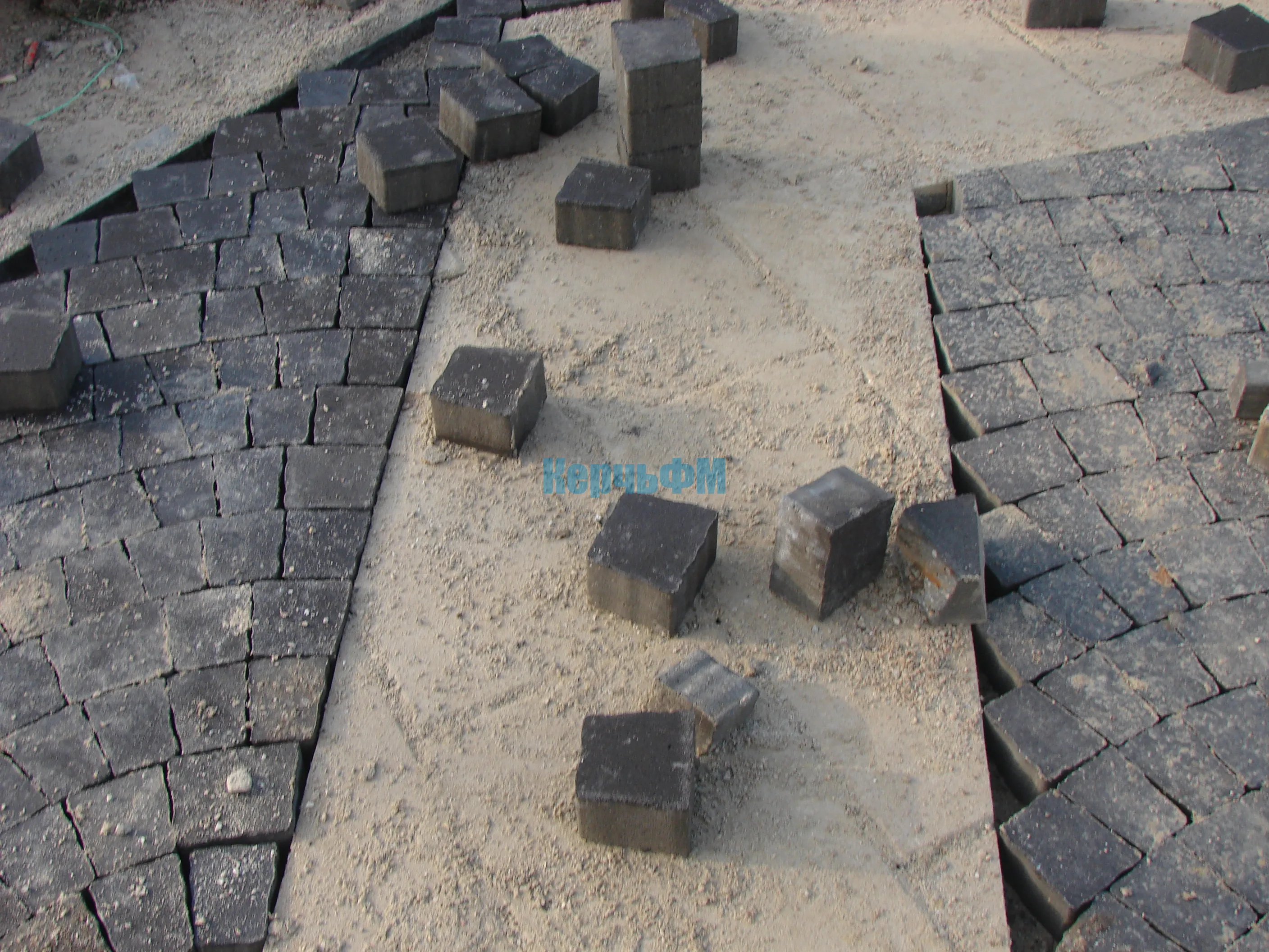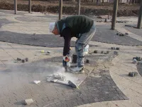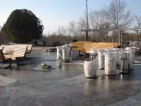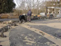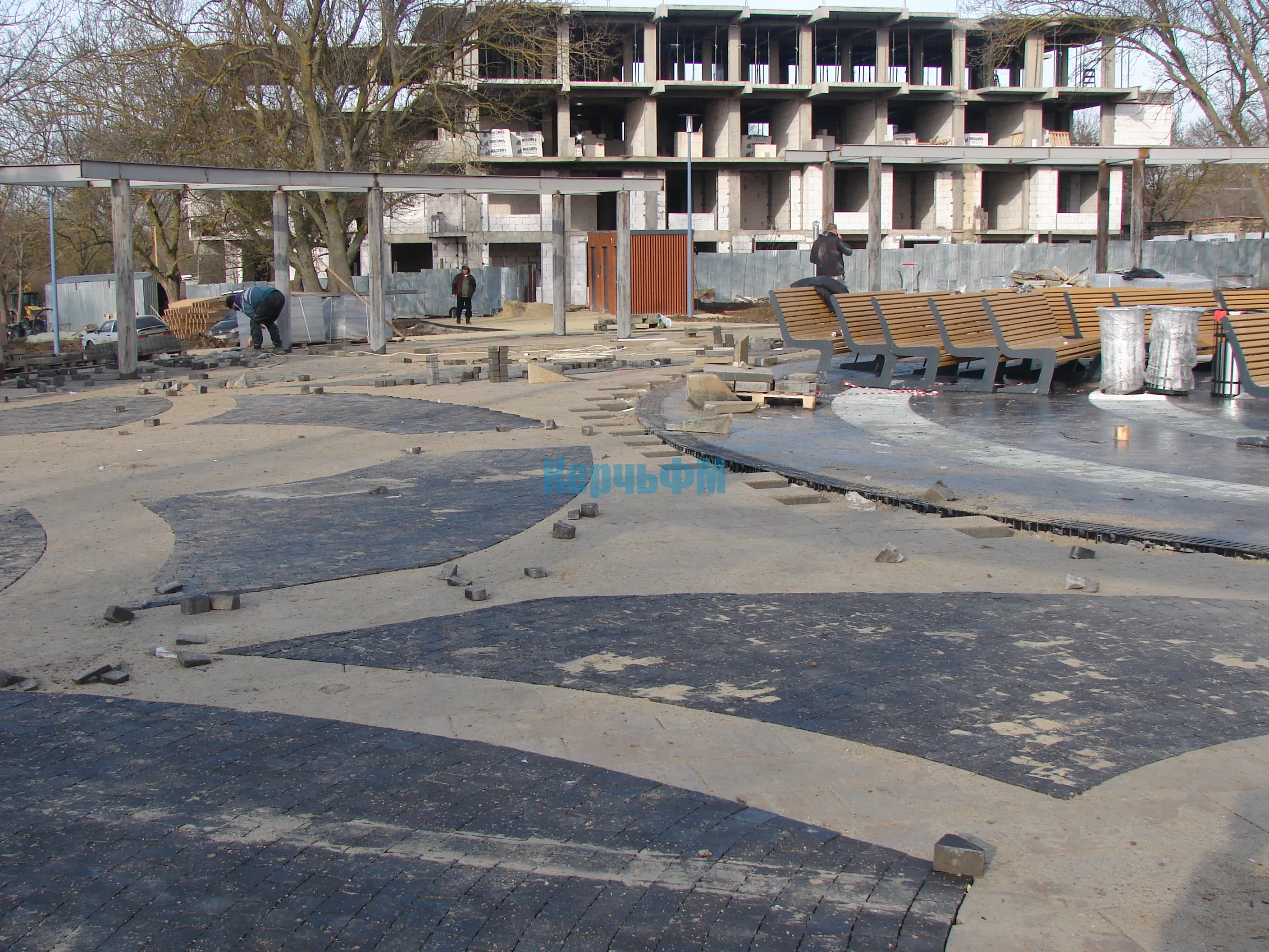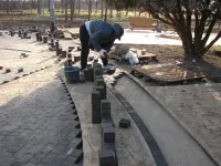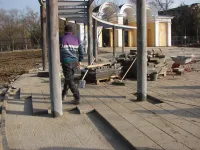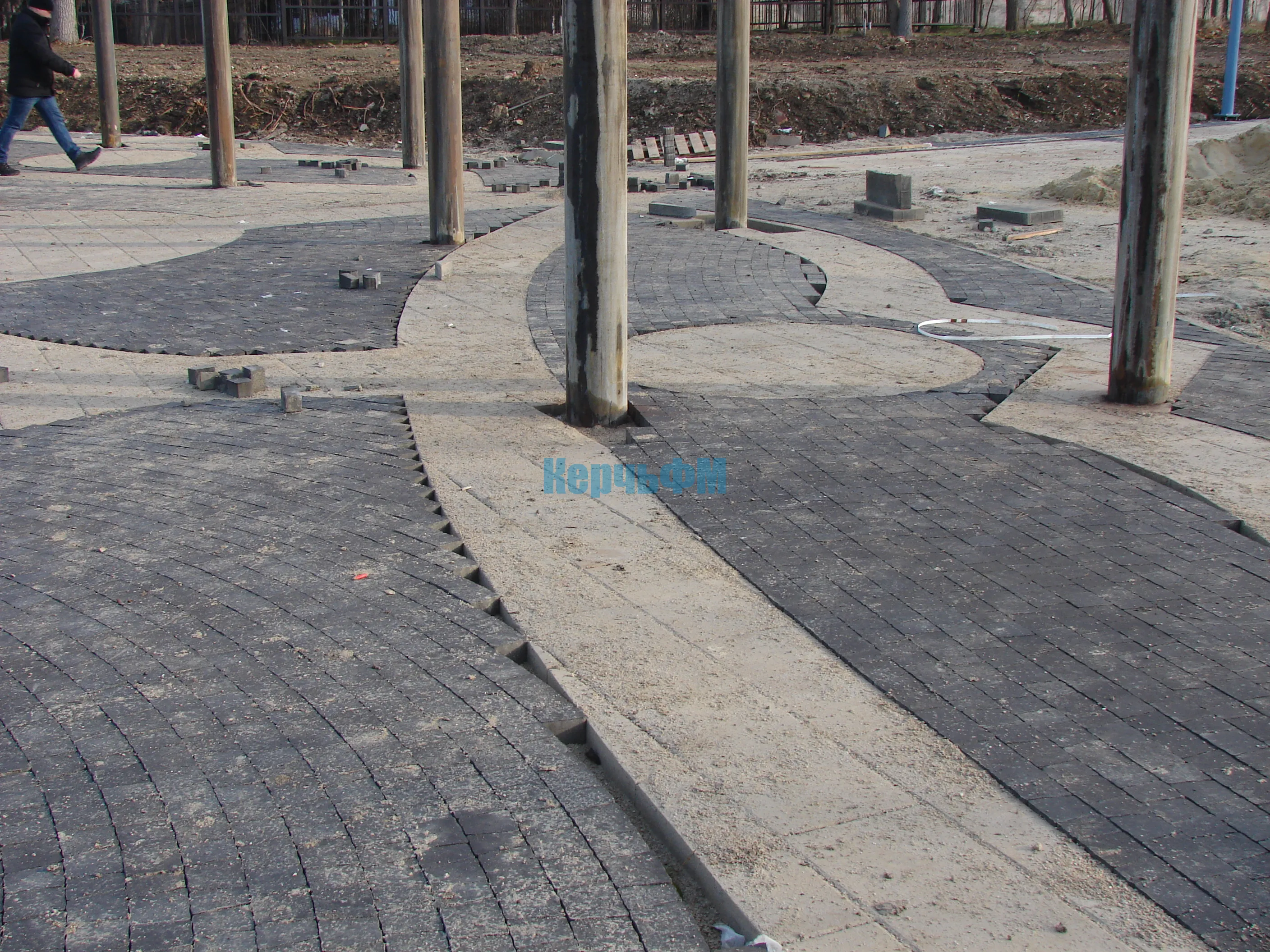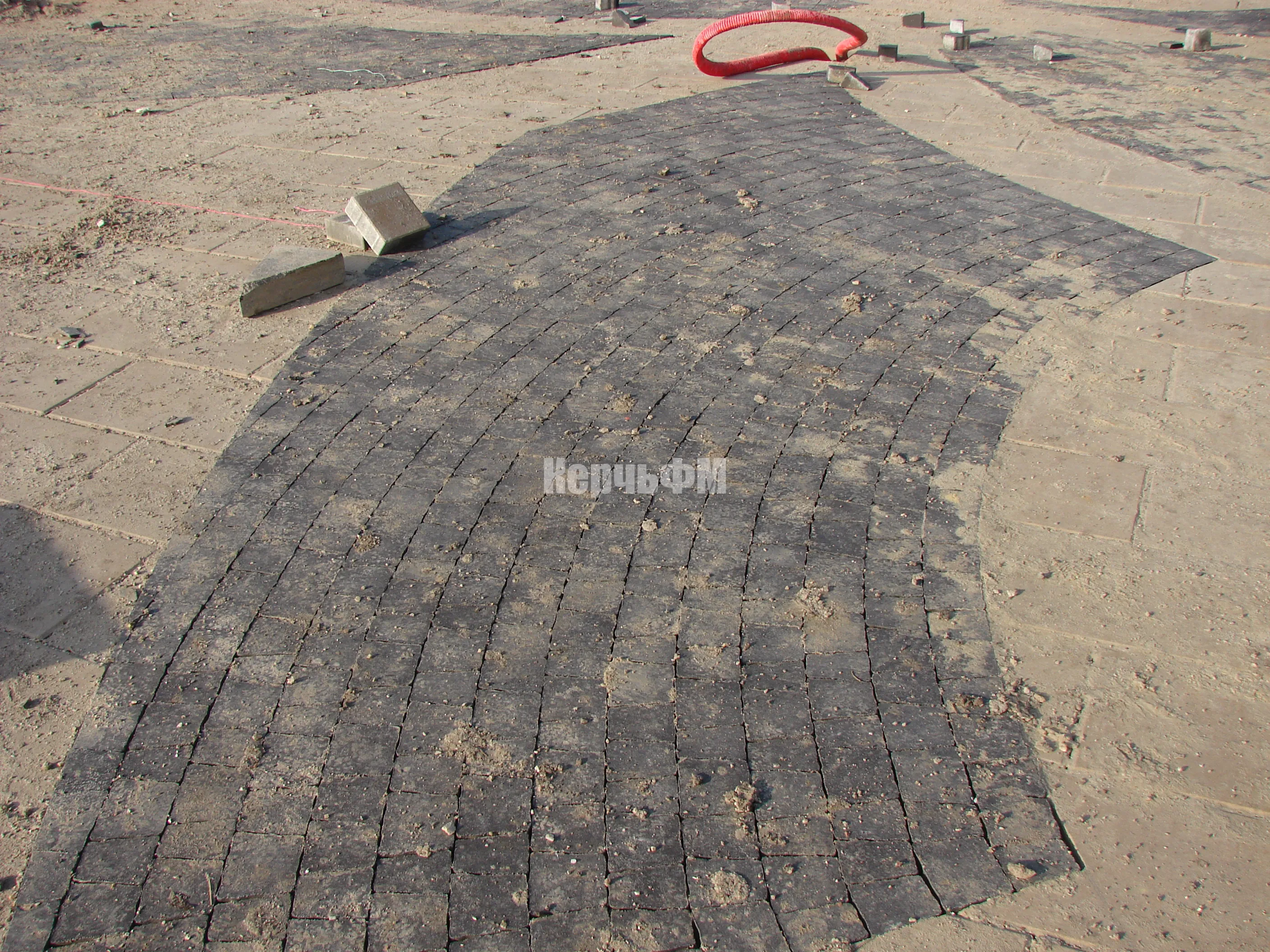 Мощение территории вокруг фонтана в Приморском парке близится к завершению.