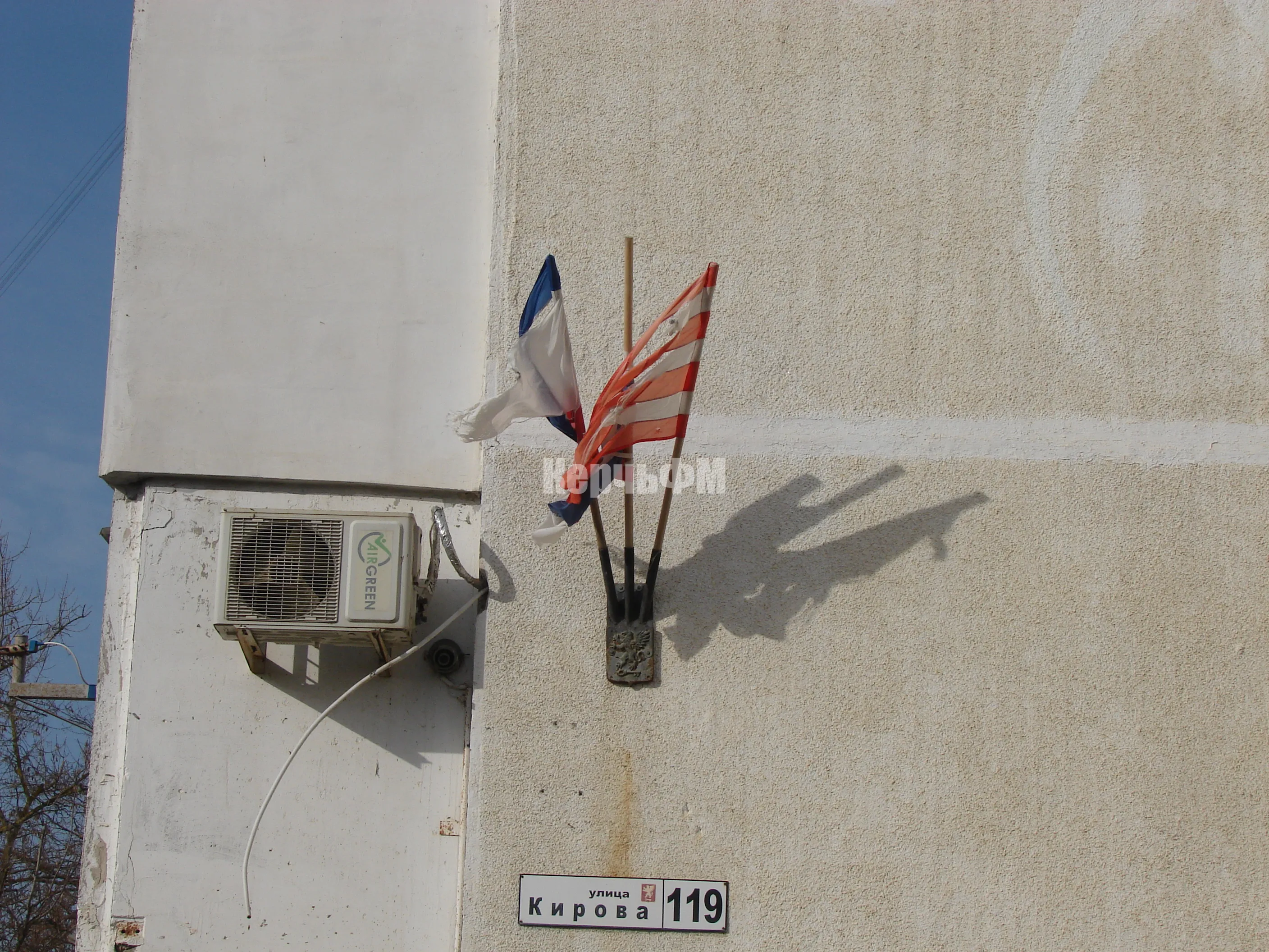 Из-за сильных ветров января в негодность пришли флаги, размещенные с торца дома Кирова, 119.