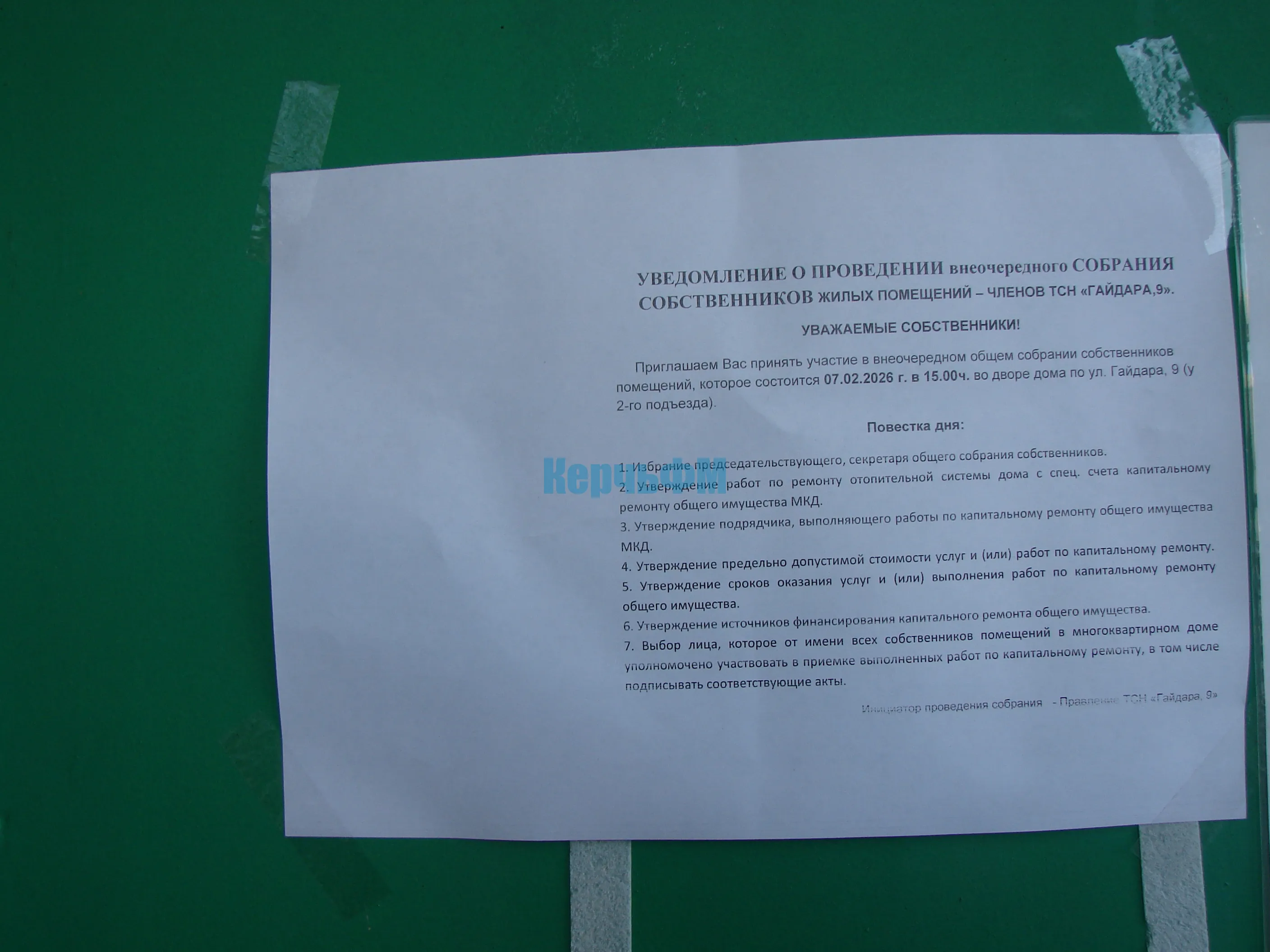 На не так давно покрашенных свежей краской подъездных дверях МКД по Гайдара, 9 поклеили информационные листки  и объявления.