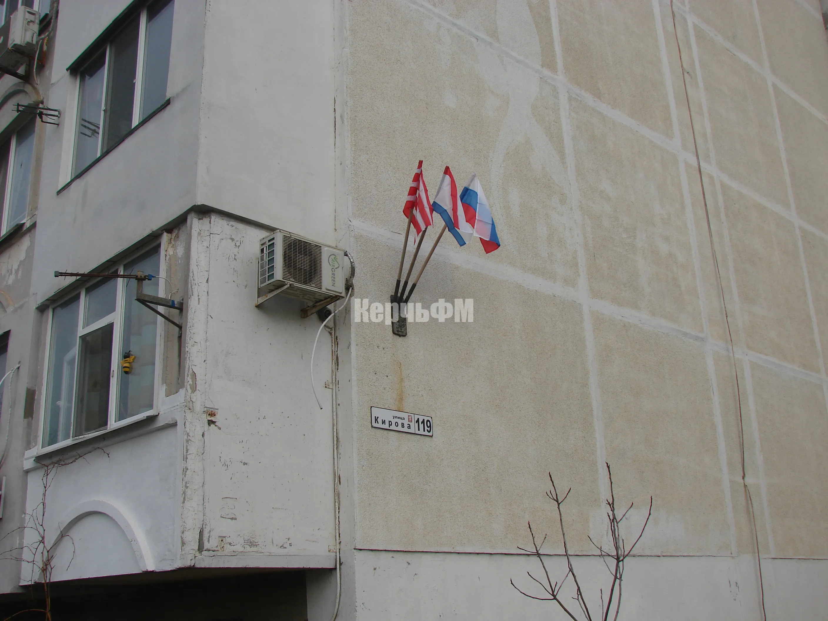 Накануне в новостной ленте КерчьФМ был опубликован материал о порванных ветром флагах, которые закреплены на торце высотки по Кирова, 119.