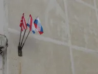 Сегодня утром местные жители отметили положительные изменения: флаги поменяли на новые.