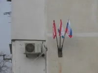 На доме по Кирова, 119 в Керчи заменили порванные ветром флаги