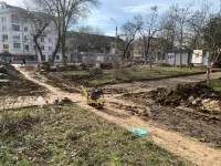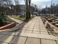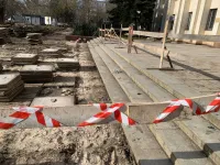 Демонтаж старых плит дошел в начале текущей недели до площади перед центральным входом в здание.
