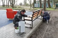 В Молодежном парке устанавили новые скамейки на площадке для бадминтона