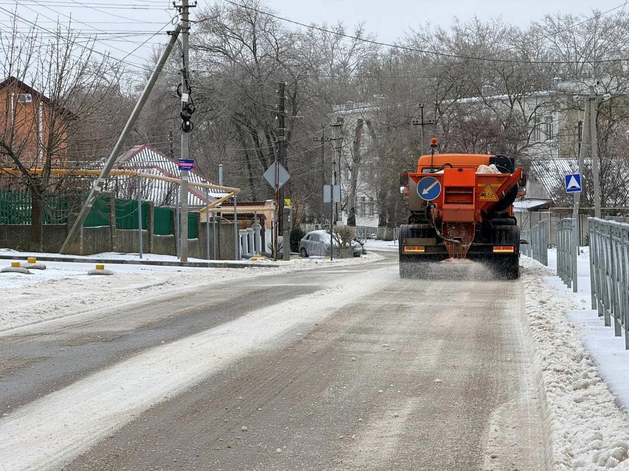 "При необходимости проводится уборка снега и очистка наледи — на некоторых участках толщина ледяной корки за сутки достигала 3 см. Такие участки сначала обрабатывали солью, затем очищали от наледи и при необходимости повторно обрабатывали.