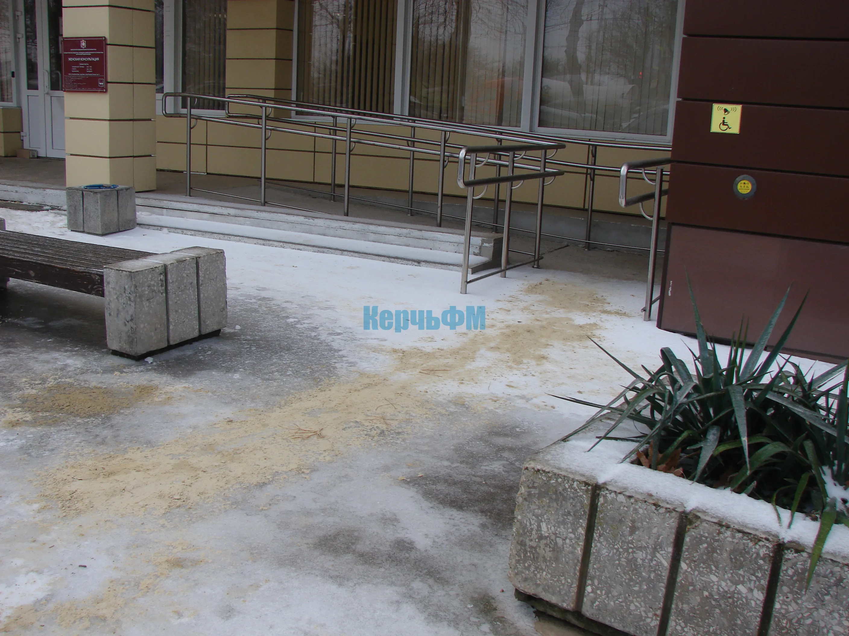 Как сообщают КерчьФМ жители района Верхний Солнечный, сегодня утром тротуары были подсыпаны песком, проходить по ним стало легче.