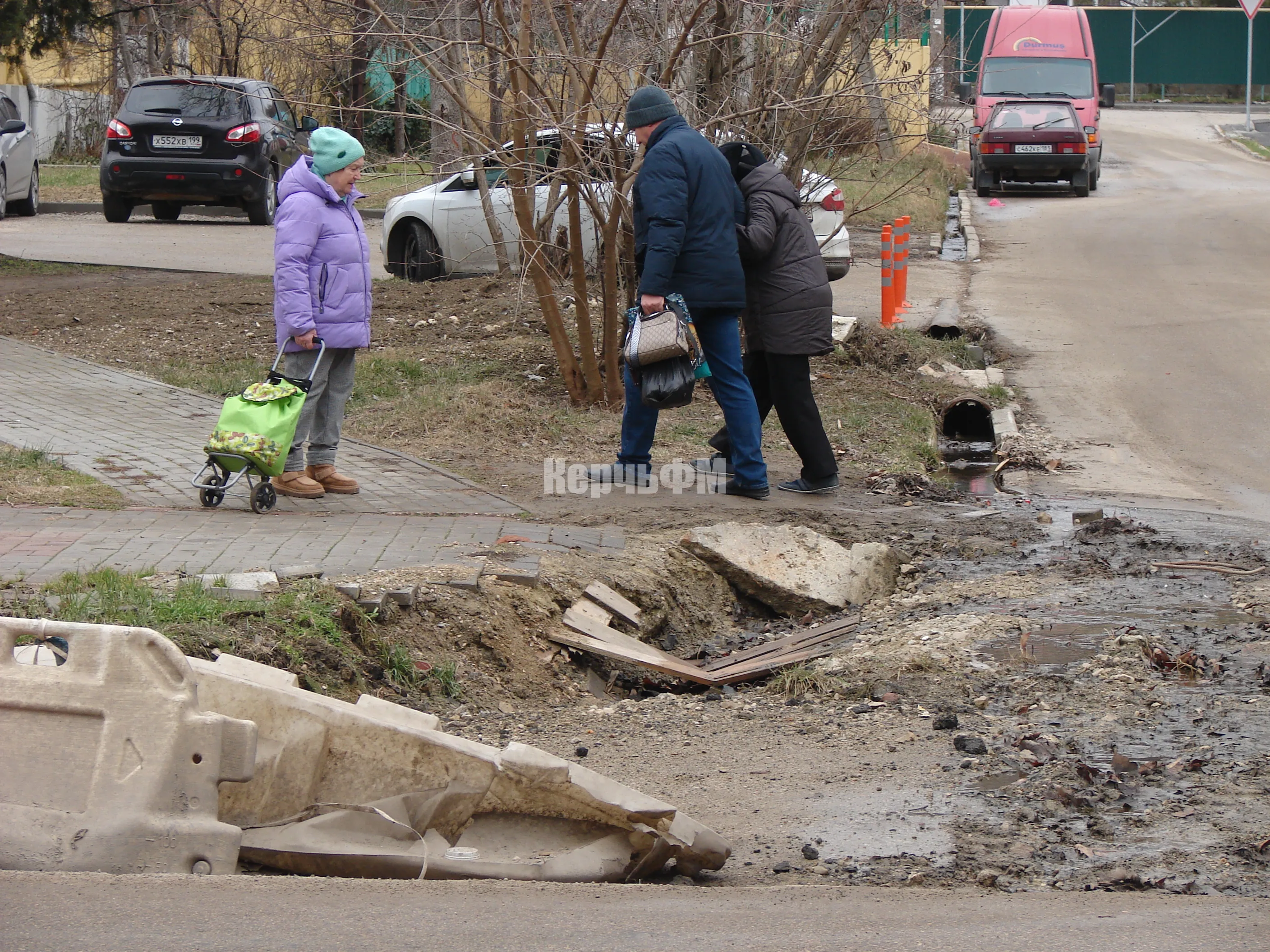 Обустройство ливневой канализации в районе пешеходного перехода у остановки "Босфорский" продолжается.