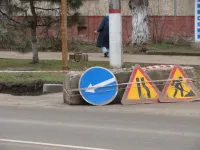 Зона работ ограничена дорожными знаками и движению транспорта не препятствует.
