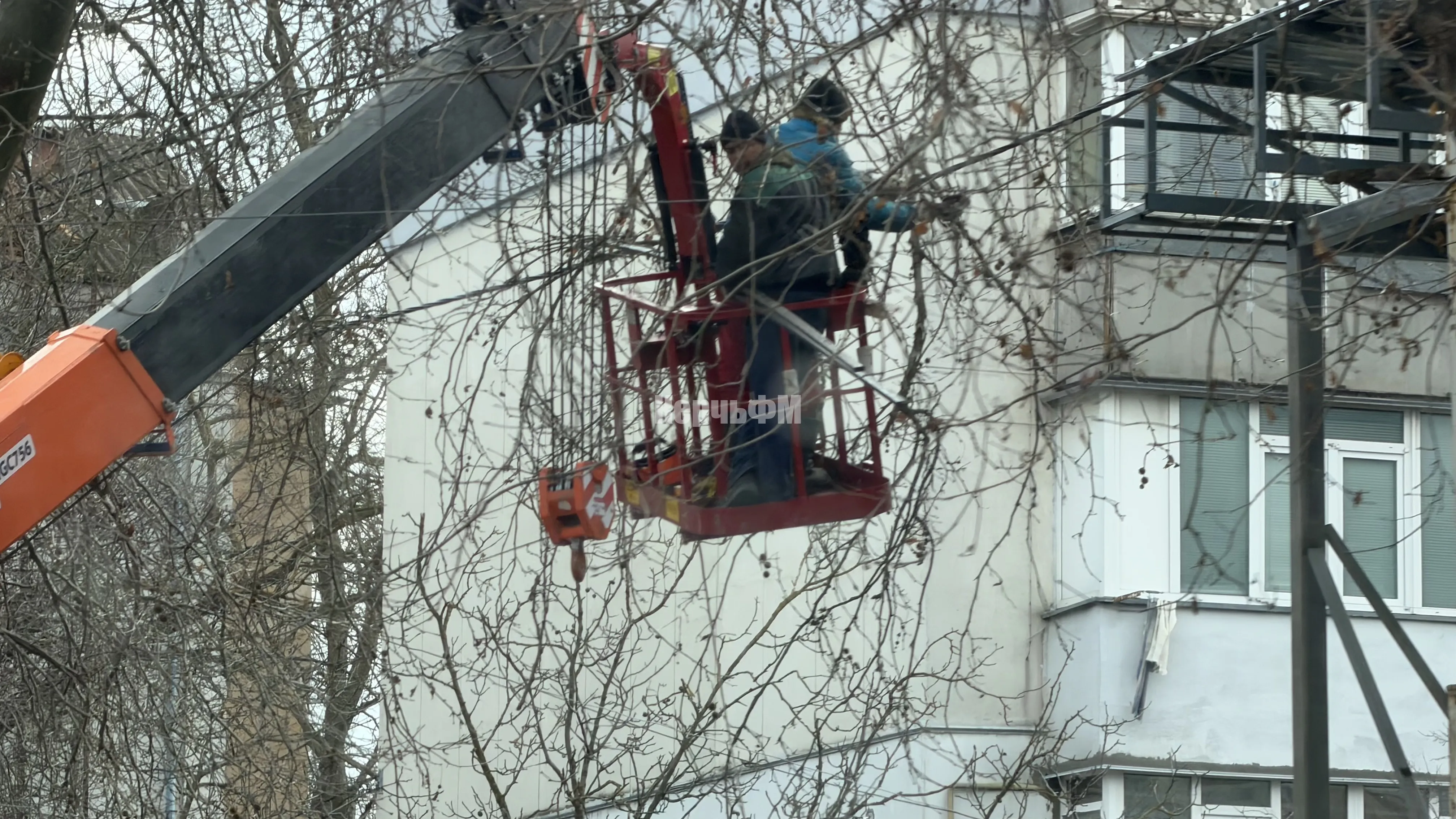 Рабочие спилили веток, которые соприкасаются с проводами.