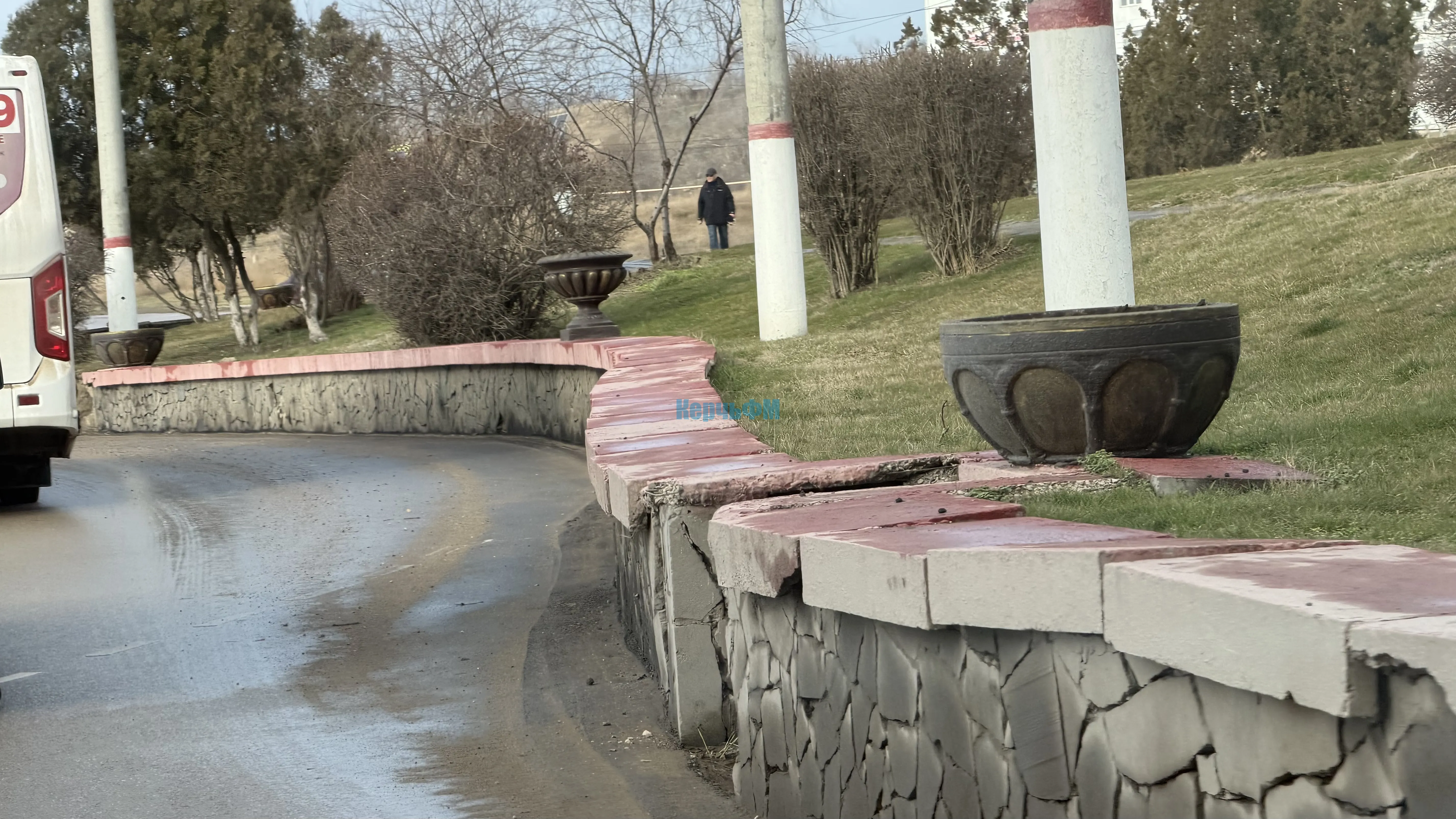 В Керчи парапет вдоль дороги на улице Свердлова требует ремонта. Облицовка конструкции заметно разрушилась и местами осыпается прямо на проезжую часть, придавая участку неухоженный вид, - передает КерчьФМ