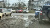 Однако за прошедшее время дорожное покрытие так и не привели в порядок. Площадка остается в ямах и грязи, а посетителям рынка приходится идти по лужам.