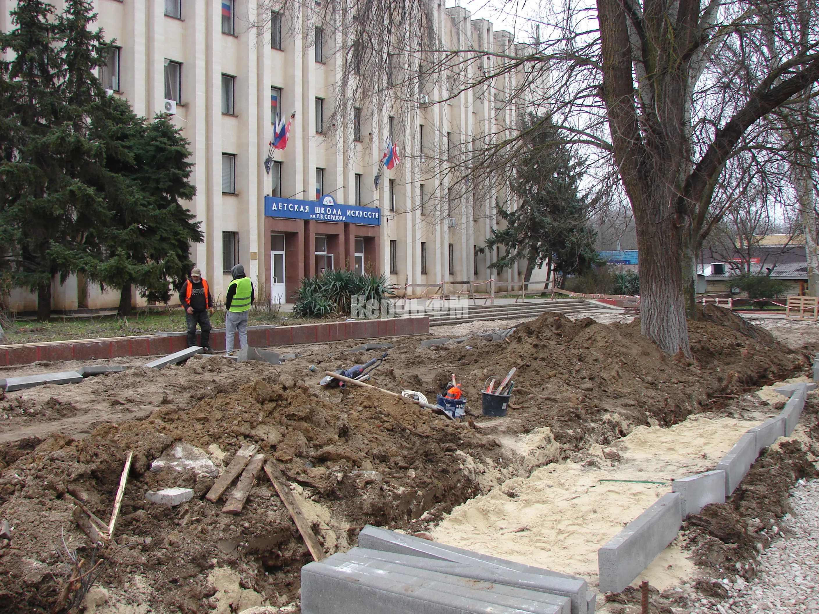 У Школы искусств им. Р. Сердюка продолжаются работы по планировке новых тротуаров.