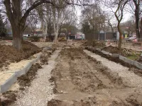 Следующим этапом станет отсыпка основания аллей песком и щебнем, и мощение.