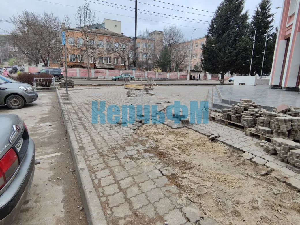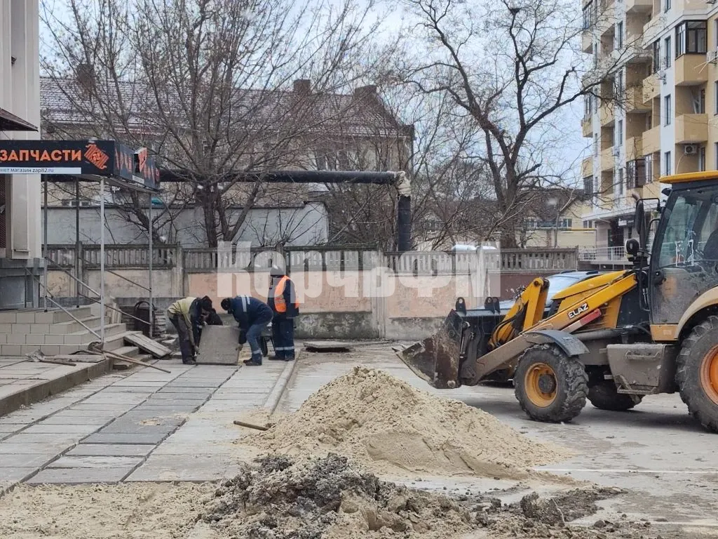 Демонтированные тротуарные плиты возвращают на место, перед этим засыпав траншеи песком и щебнем, передает КерчьФМ.