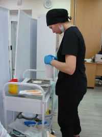 6 студенток: из Юго-Восточной Академии (г. Феодосия), медицинского колледжа "Монада" (г. Евпатория) и медицинского колледжа им. Г.К.Петровой (г. Керчь) демонстрируют свои знания по 5 модулям.