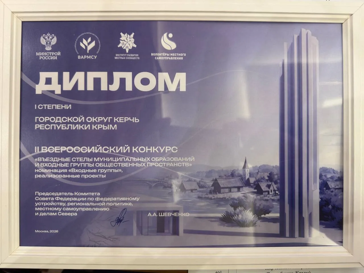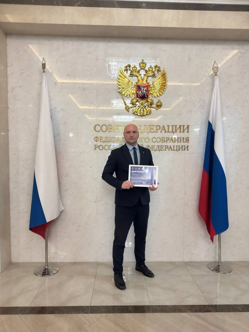 Награду в номинации «Входные группы — реализованные проекты» главе города муниципального образования Денису Колеснику вручили в Совете Федерации.