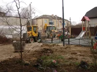 На придомовой территории по Казакова, 51 продолжаются активные работы по благоустройству.