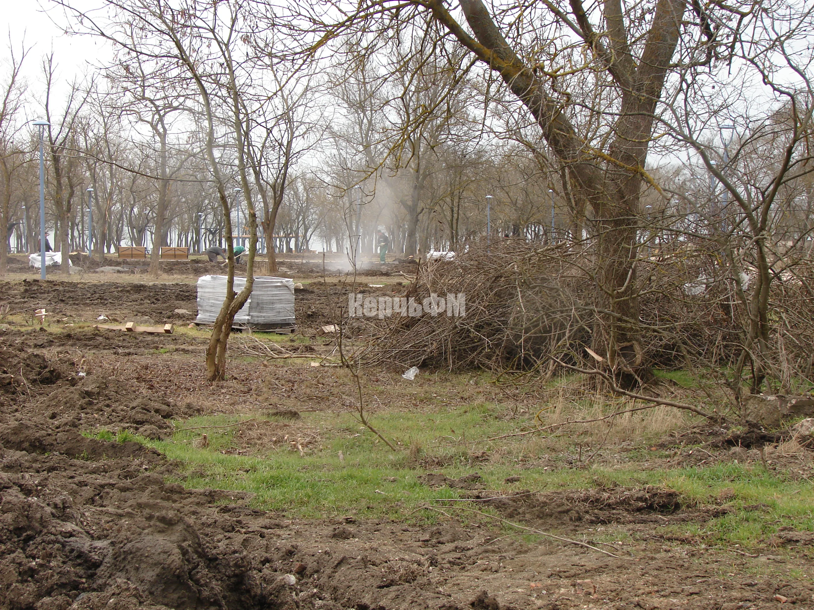 Работы по комплексному благоустройству Приморского парка сосредоточены сегодня на боковой зоне со стороны больницы №2, передает КерчьФМ.