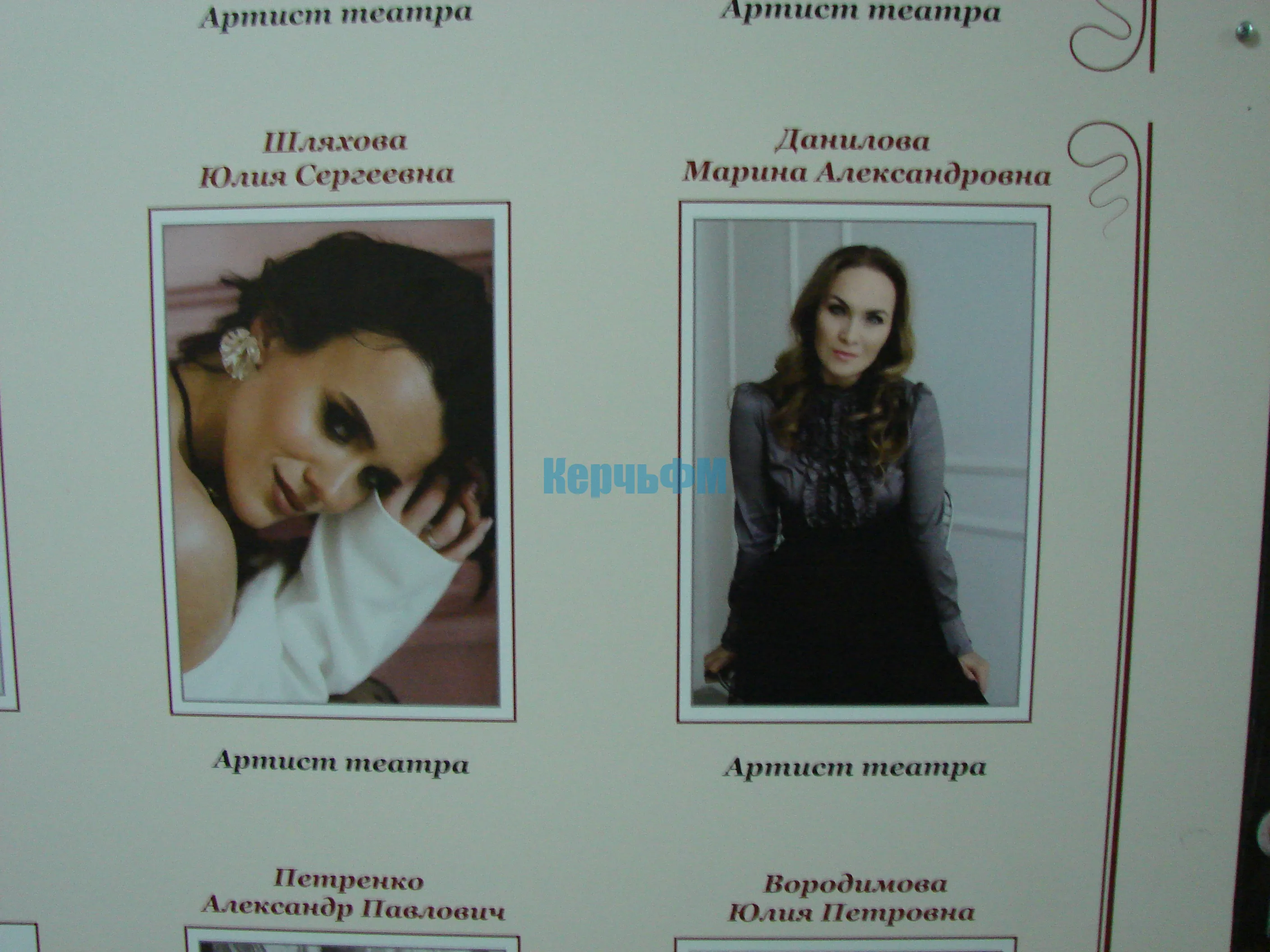 "Вчера ходили на спектакль нашего Керченского драматического театра. Восторг огромный. Удовольствия - море. Сначала думала: я одна в тихую слезу вытираю, но посмотрела вокруг - нет, весь зал. И, вот, стало так интересно: кто эти местные актёры нашего театра и не нашла абсолютно никакой информации.