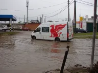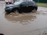 Он не сильный, и ливневки на центральных автомагистралях города со стоками справляются.