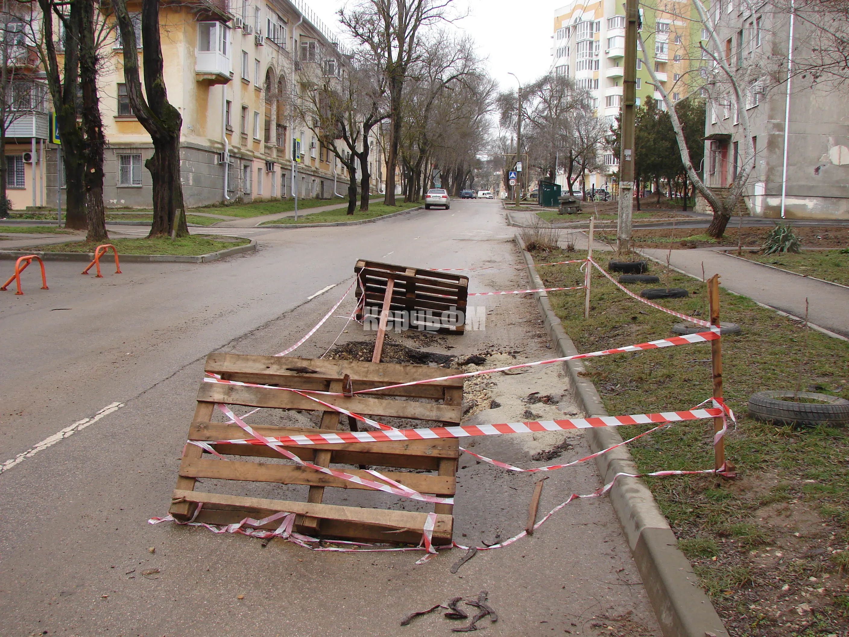 Более того, теперь в месте просадки образовалась яма, которую заботливо оградили сигнальной лентой.