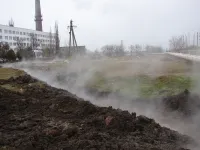 Сегодня над газоном Ворошиловского кольца появились клубы пара.