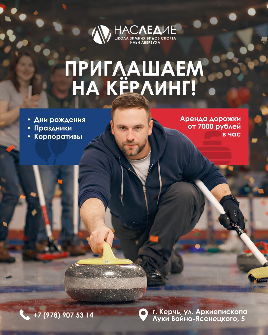 Школа зимних видов спорта Ильи Авербуха «НАСЛЕДИЕ» в г. Керчь приглашает отметить праздник по-настоящему круто. Выбирайте формат, который подходит именно вам: