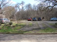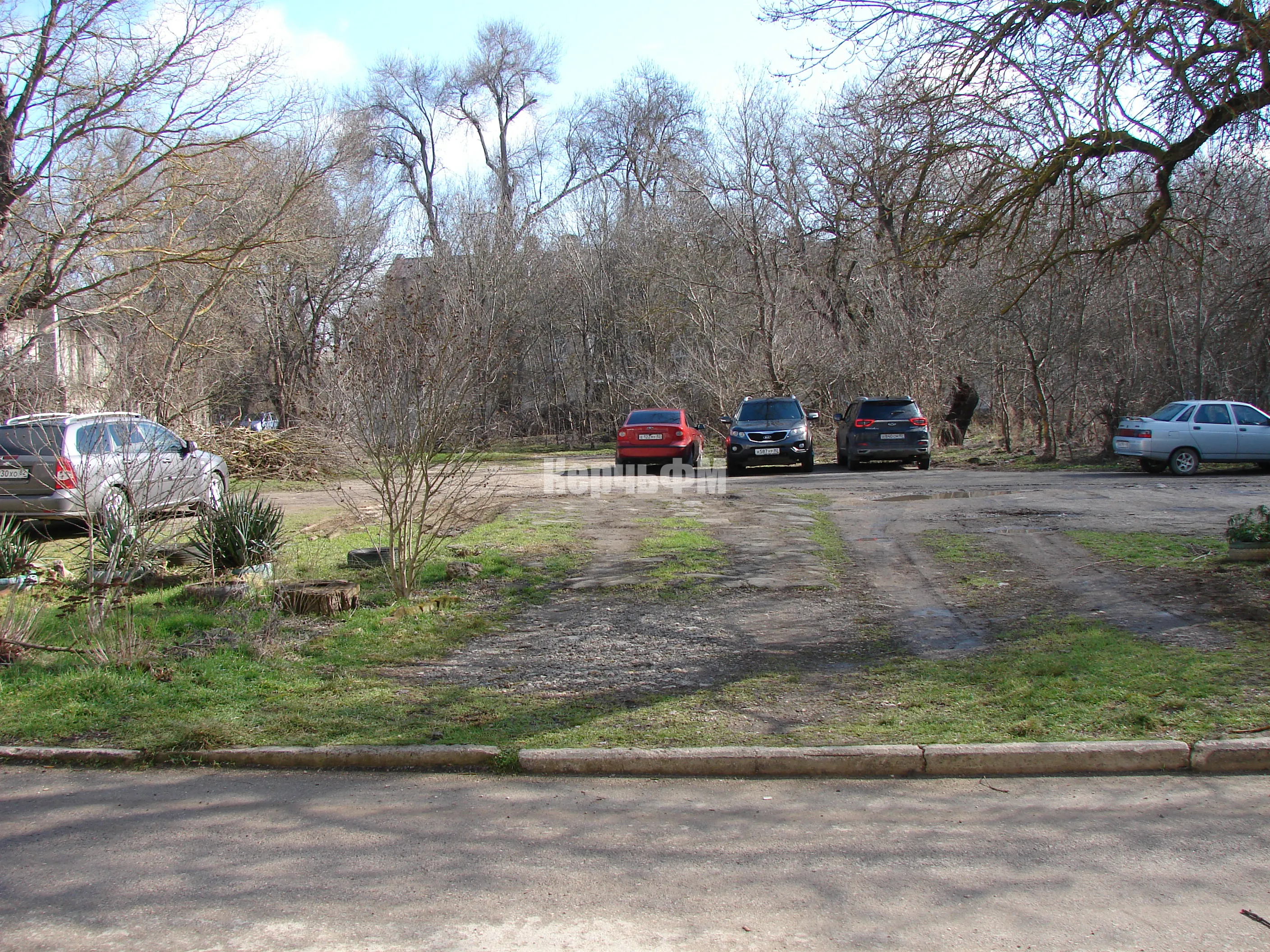 Машины паркуются в грязи или на зеленой зоне.