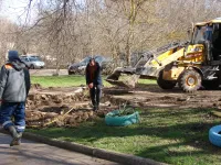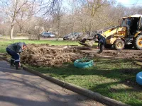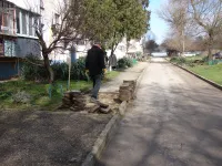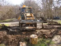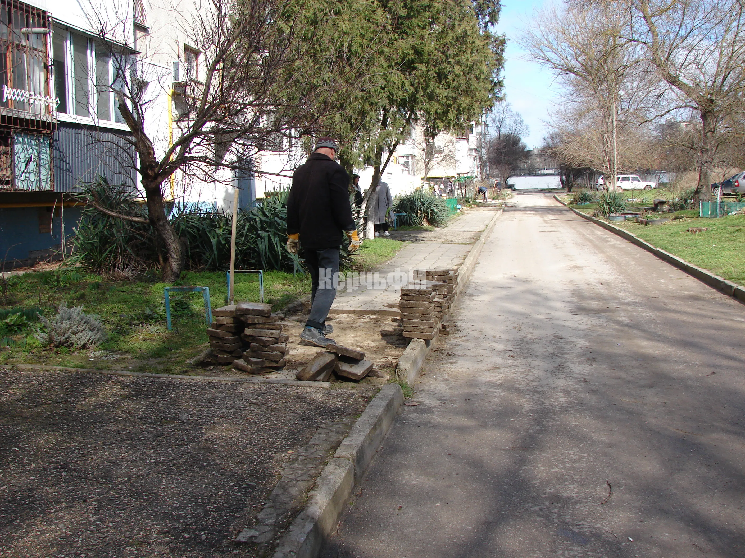 Сегодня работы по обустройству парковок уже ведутся, а также демонтируется старая тротуарная плитка вдоль дома.
