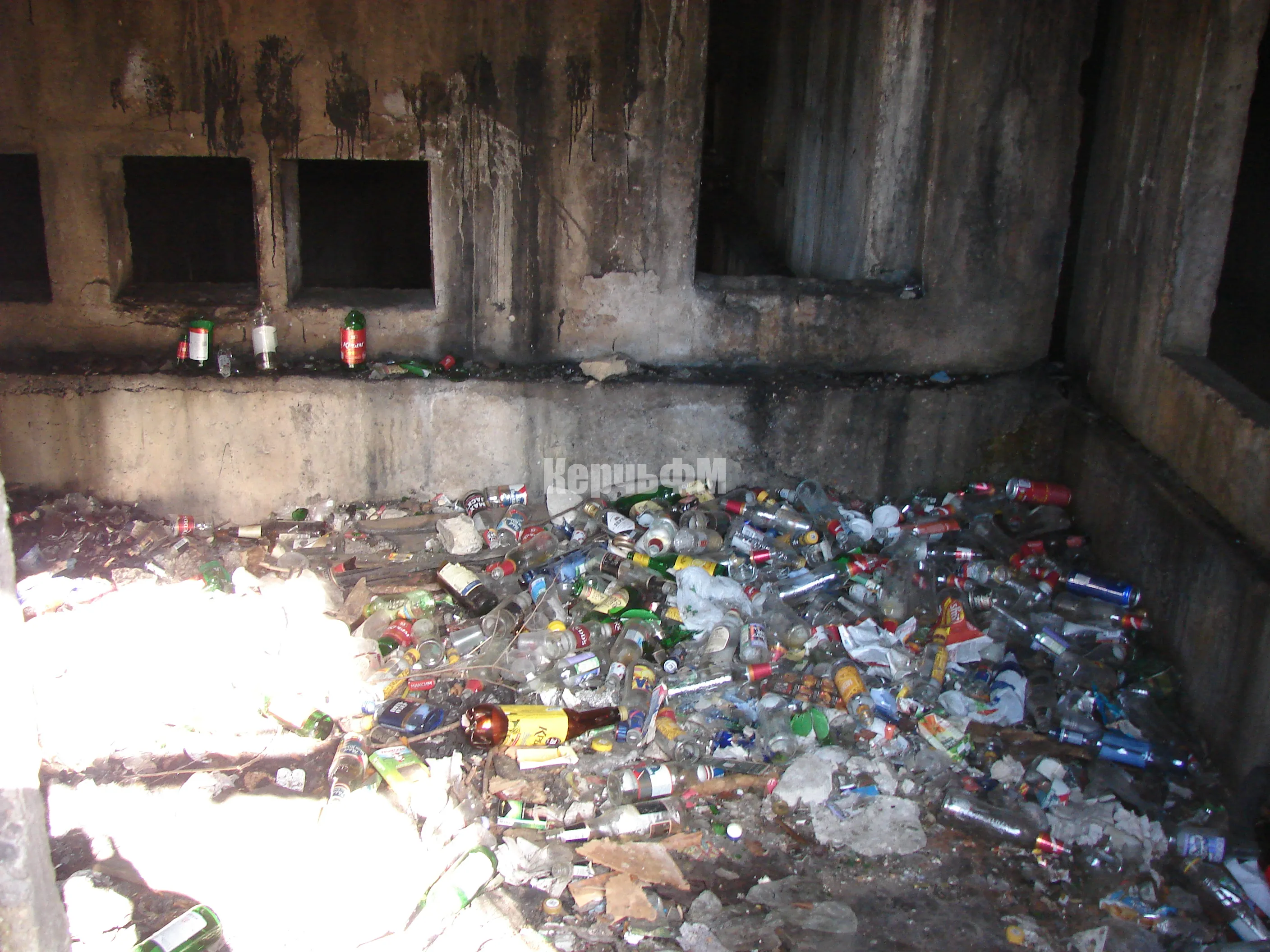 Внутри здания сплошные бутылки и мусор, передает КерчьФМ.