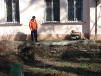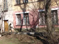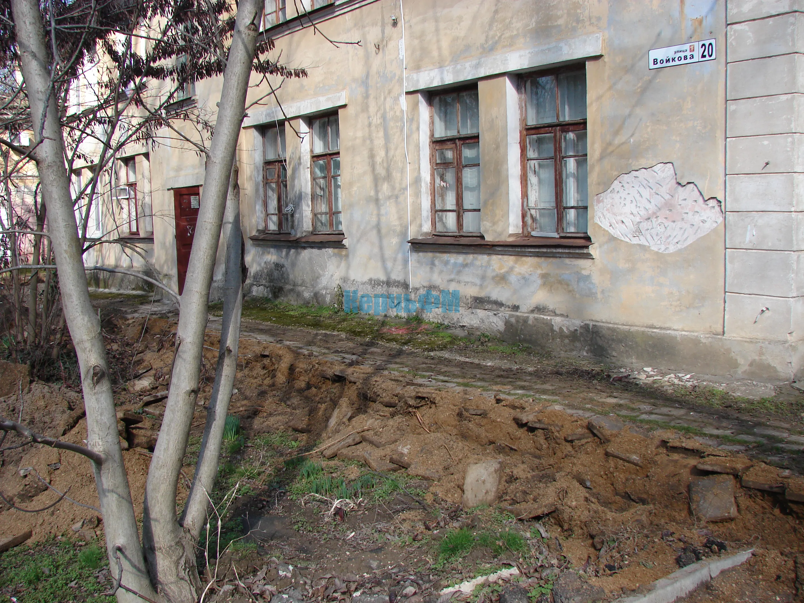 У домов №20 и №22 по улице Войкова сегодня расчищали подходы к подъездам с фасадной стороны зданий.