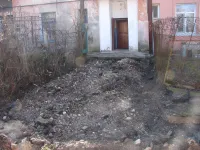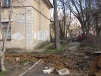 Здесь никогда не было тротуарных дорожек, подходы к подъездам люди обустраивали сами, как могли.
