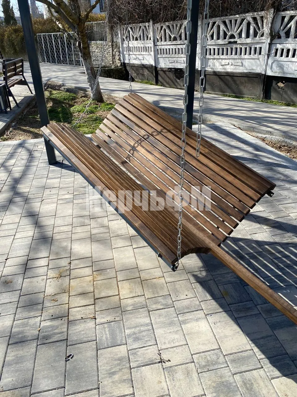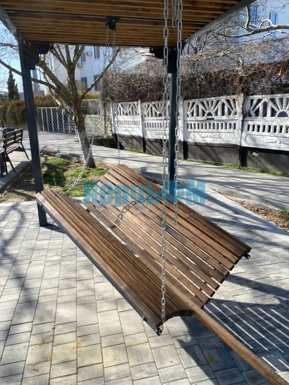 У здания КРЭС в Керчи неизвестные сломали качели под перголами
