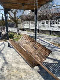 Новые летние беседки (перголы) с качелями-лавочками были установлены вдоль пешеходных дорожек у здания КРЭС во время благоустройства прилегающей территории.