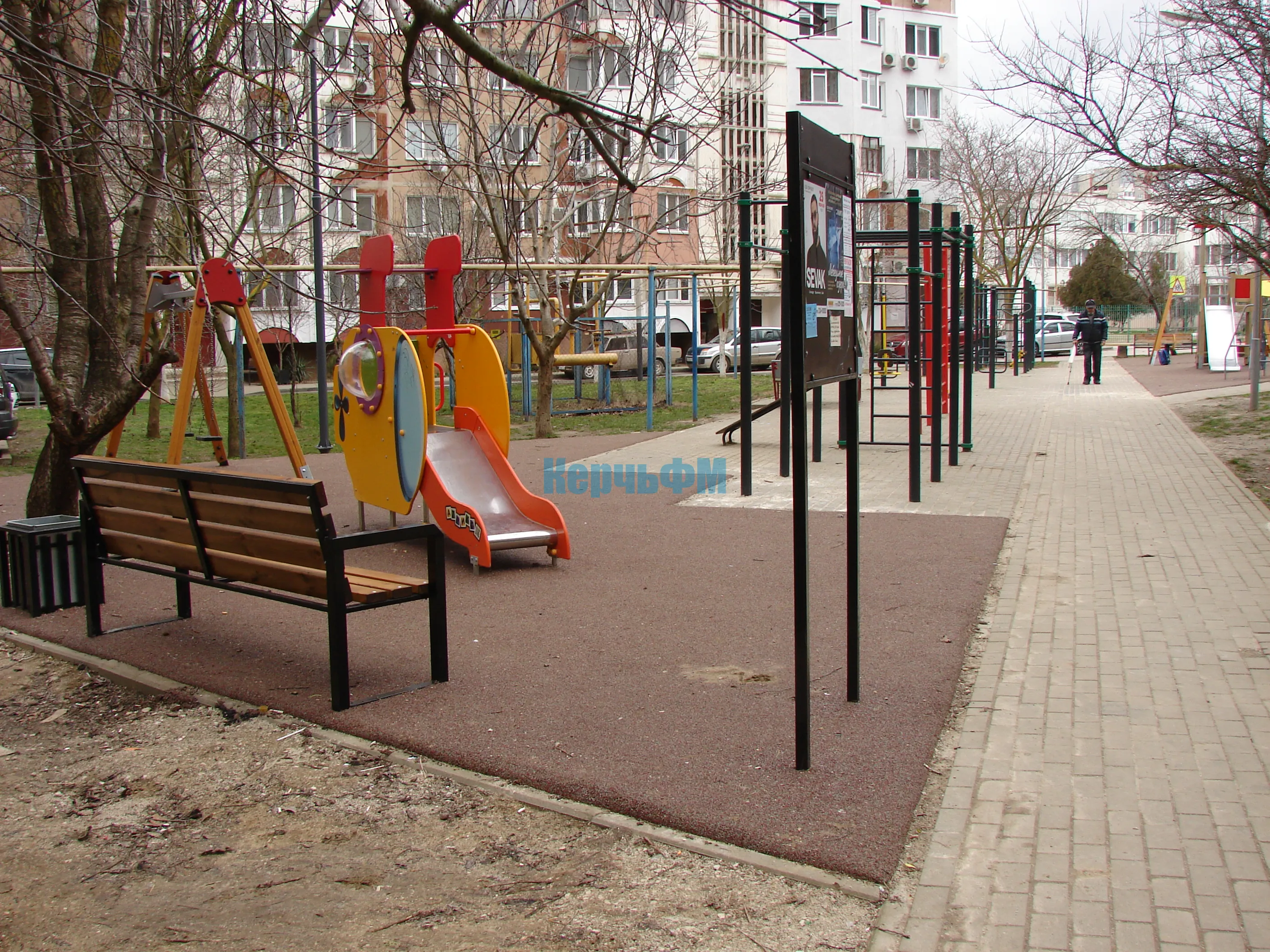 Уложили безопасное антитравматическое покрытие, установили новые горки и качели.
