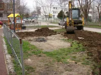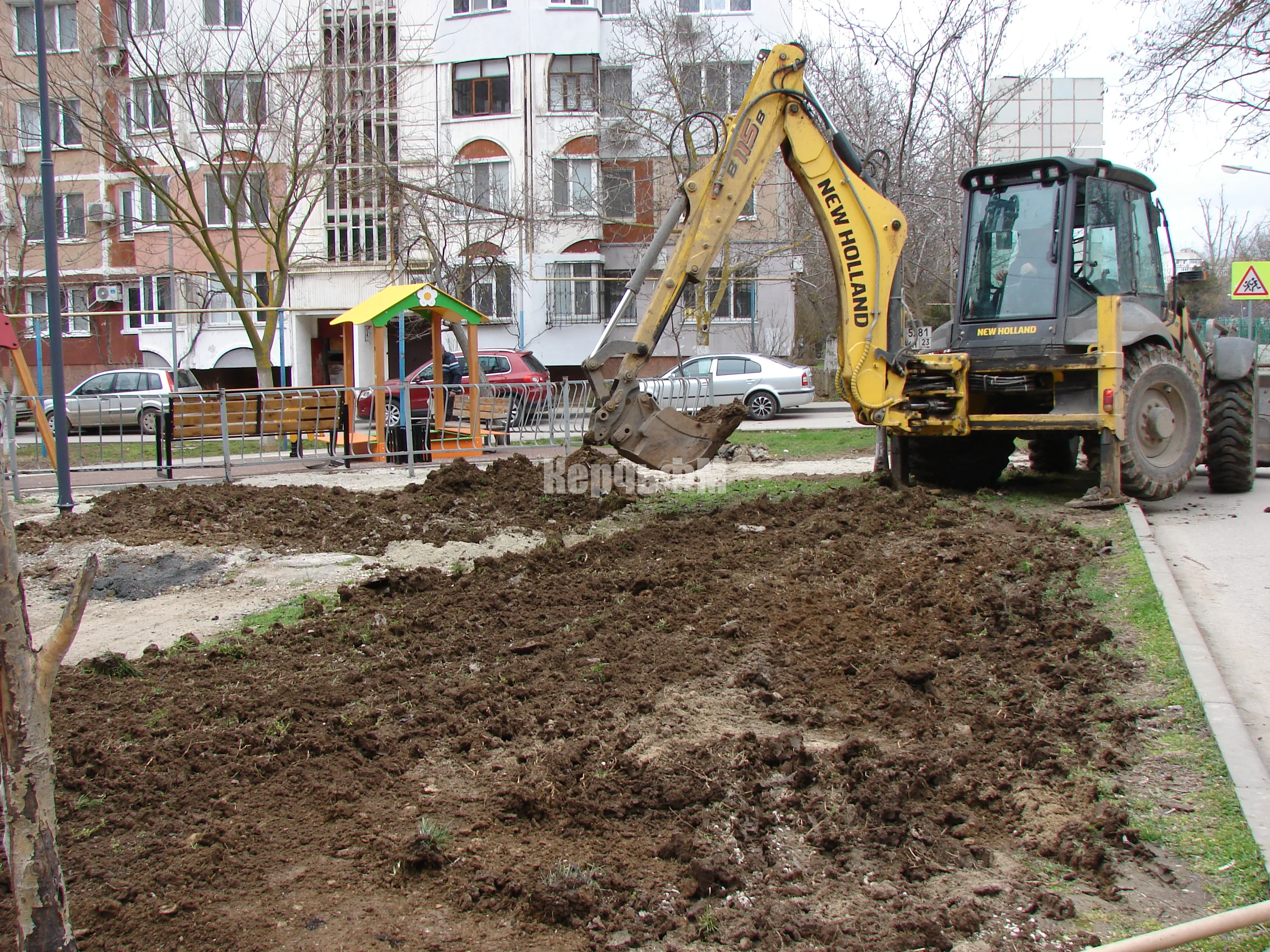 Во дворе по Кирова, 119 у детской площадки восстанавливают зеленую зону