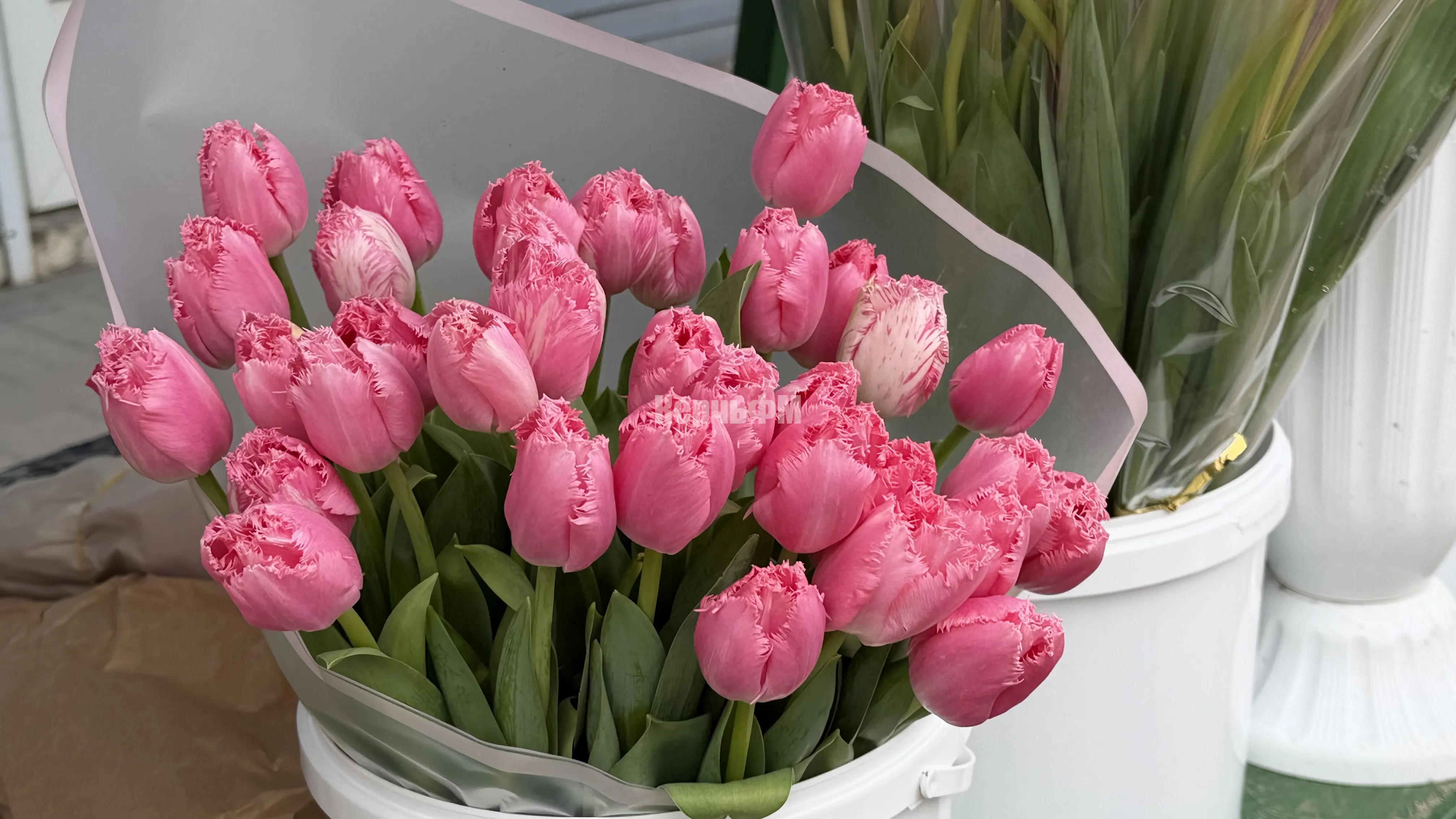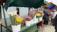 Еще один лидер праздничных продаж - это тюльпаны. Часть из них выращивают в теплицах Крыма и даже Керчи, поэтому они стоят дешевле. Цена одного цветка 100 рублей.