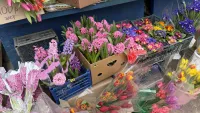 Гиацинты в горшках - по 350 рублей, в букете - по 250.