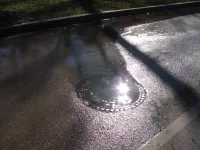 Из-под люка канализационного колодца, который находится на дороге по Суворова в районе дома №10, бегут зловонные ручьи.