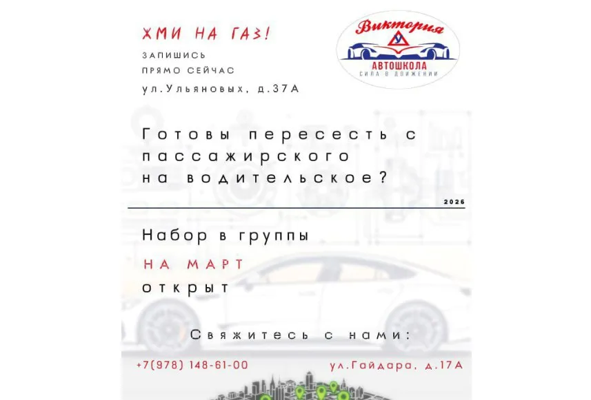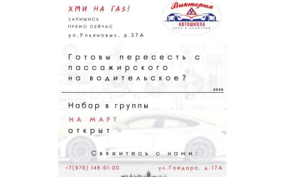 Автошкола «Виктория» проводит набор на обучение в вечернюю группу Март-Апрель, в класс на Ульяновых 37А, Гайдара 17А.